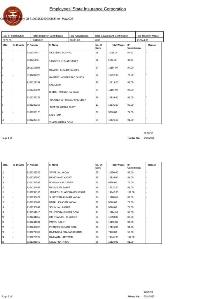 Total IP Contribution Total Employer Contribution Total Contribution Total Government Contribution Total Monthly Wages