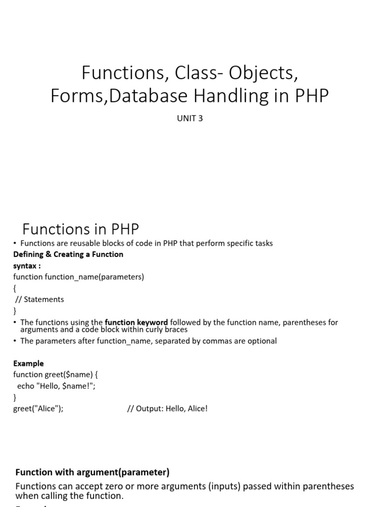 • Functions are reusable blocks of code in PHP that perform specific tasks