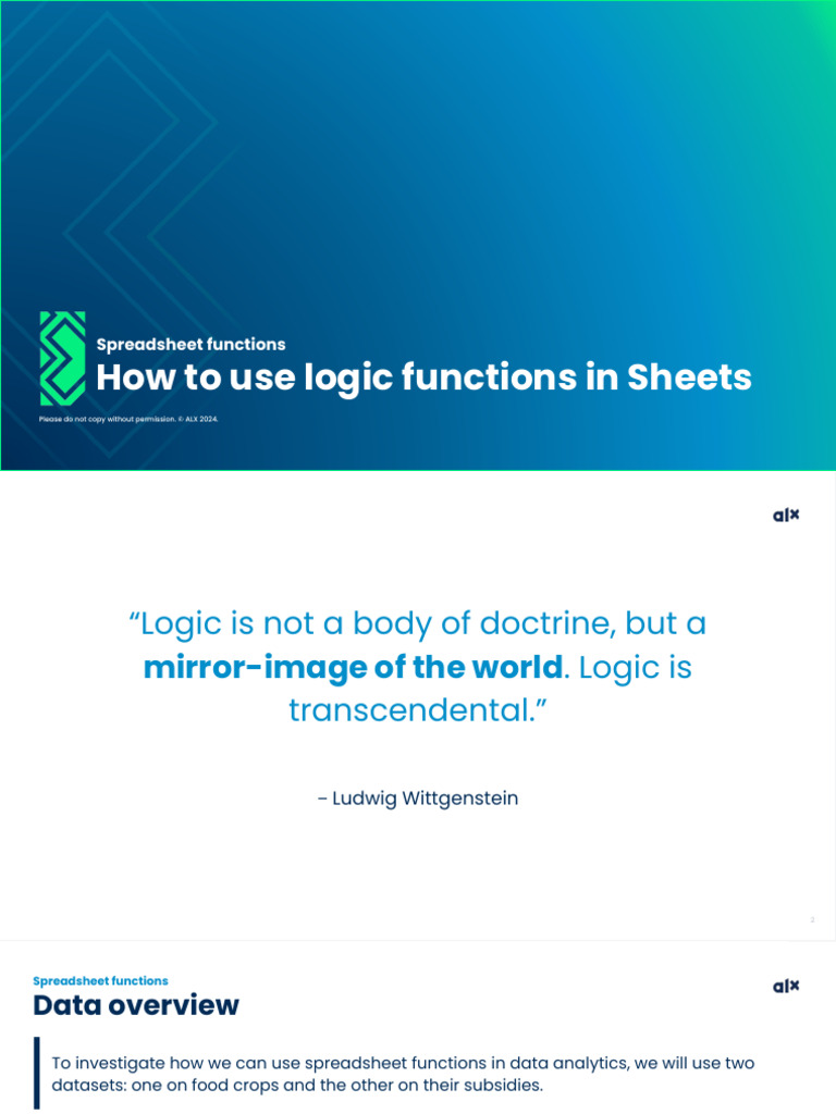 | To investigate how we can use spreadsheet functions in data analytics, we will use two