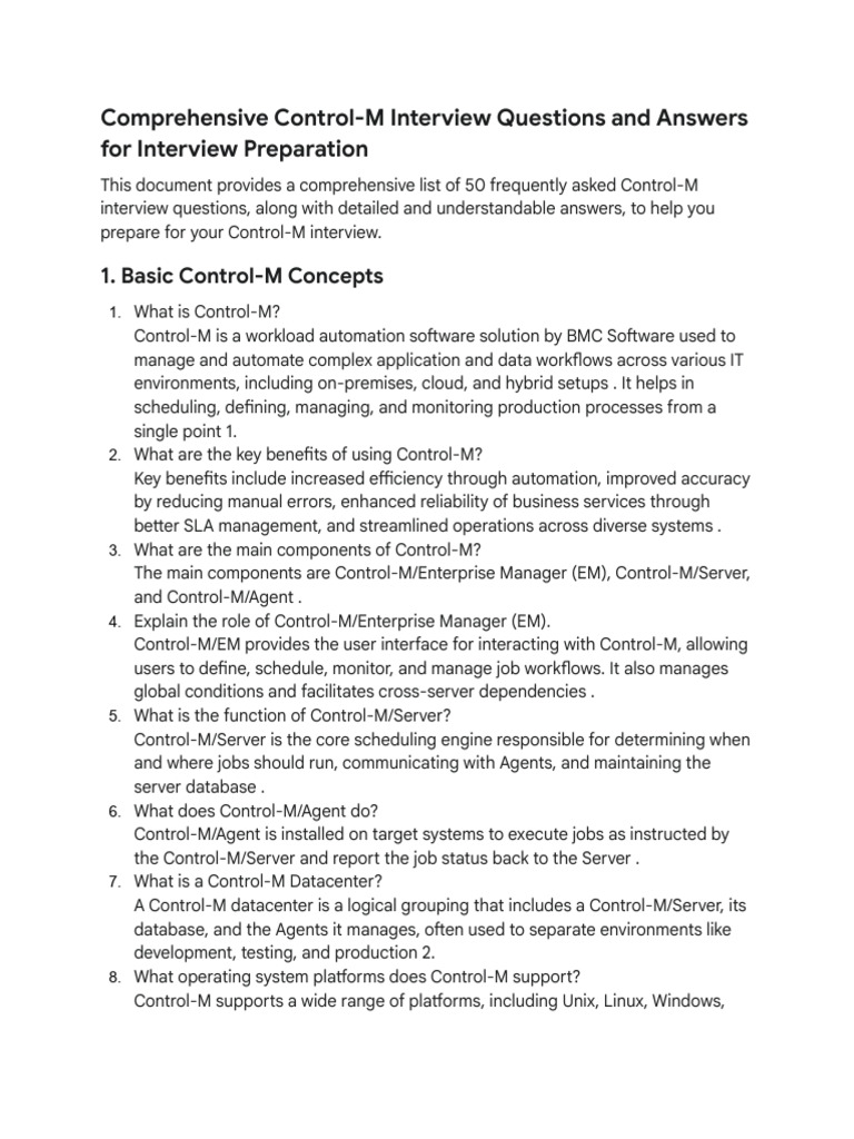 This document provides a comprehensive list of 50 frequently asked Control-M