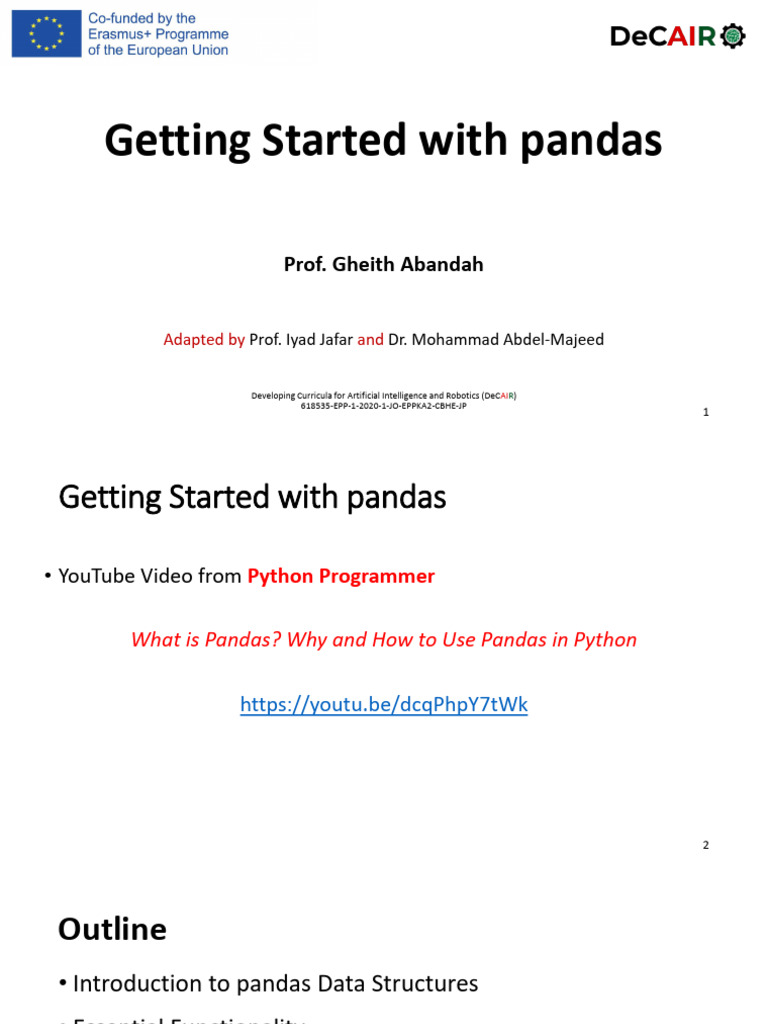 • Contains a set of labeled-array data structures (Series and DataFrame)