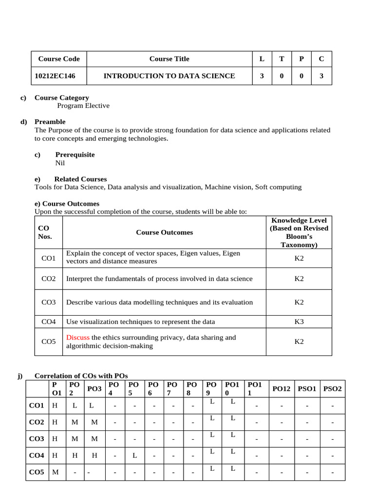 10212EC146 INTRODUCTION TO DATA SCIENCE 3 0 0 3