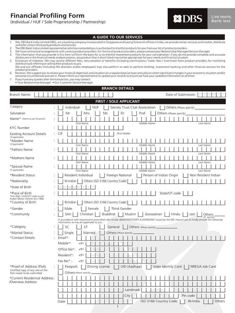 1. I certify that the information provided herein is true, complete and accurate. If any information herein changes or becomes inaccurate in any way, I shall immediately inform DBS Bank India