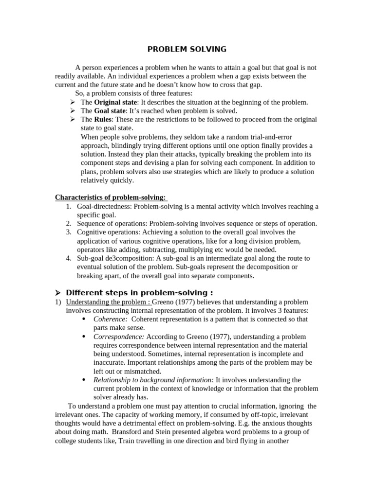 1) Understanding the problem : Greeno (1977) believes that understanding a problem