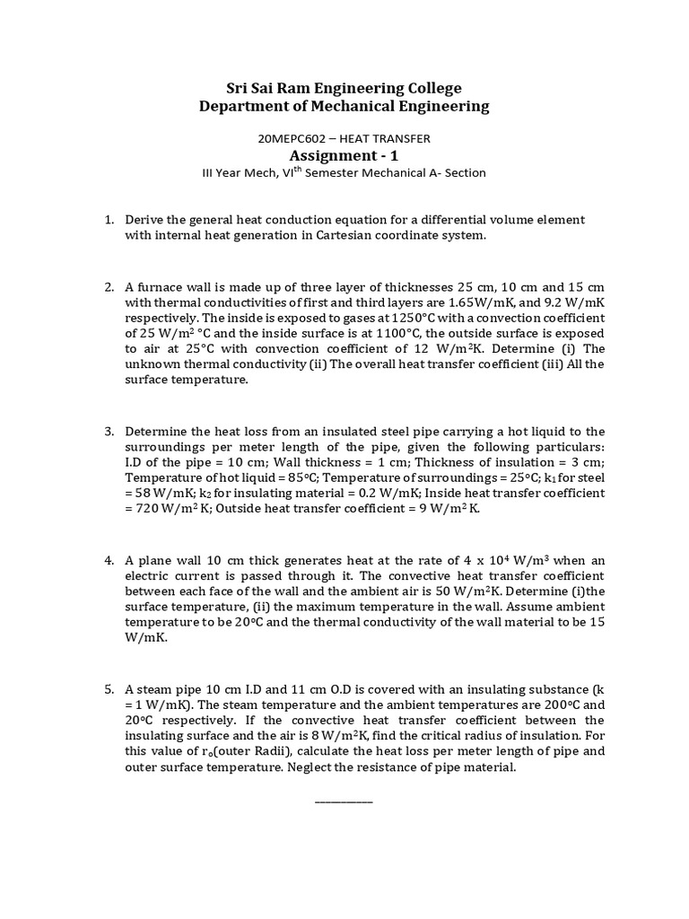 temperature to be 20oC and the thermal conductivity of the wall material to be 15