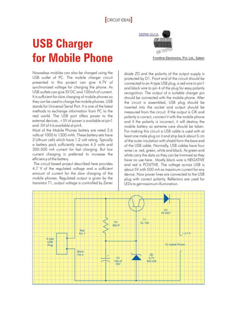 they can be used to charge the mobile phones. USB the circuit is assembled, USB plug should be