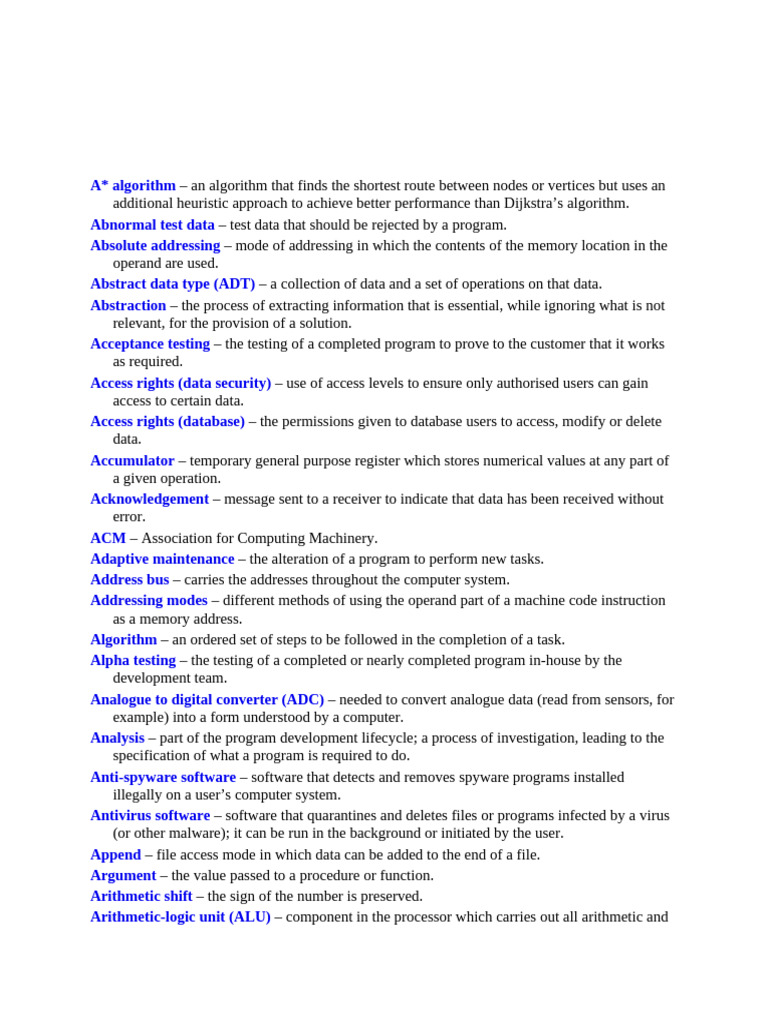 IMPORTANT DEFINITIONS OF A- LEVEL