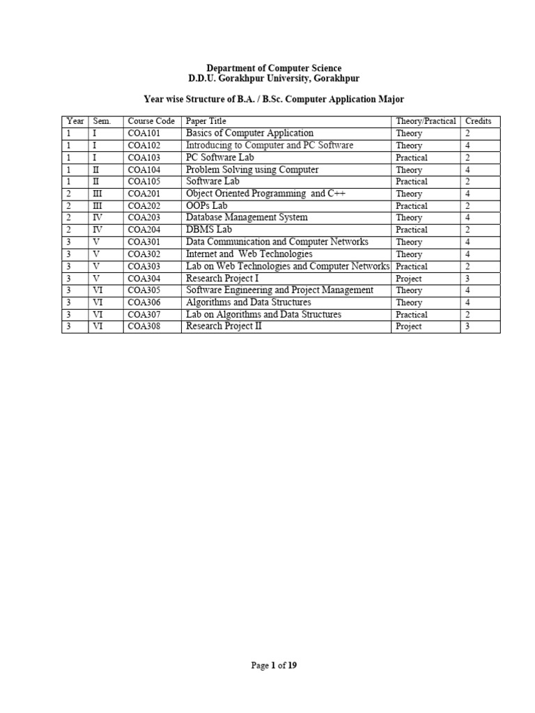 Year wise Structure of B.A./B.Sc. for Computer Application subject