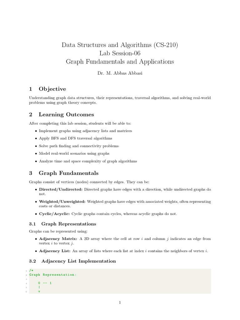 • Adjacency List: An array of lists where each list at index i contains the neighbors of vertex i.