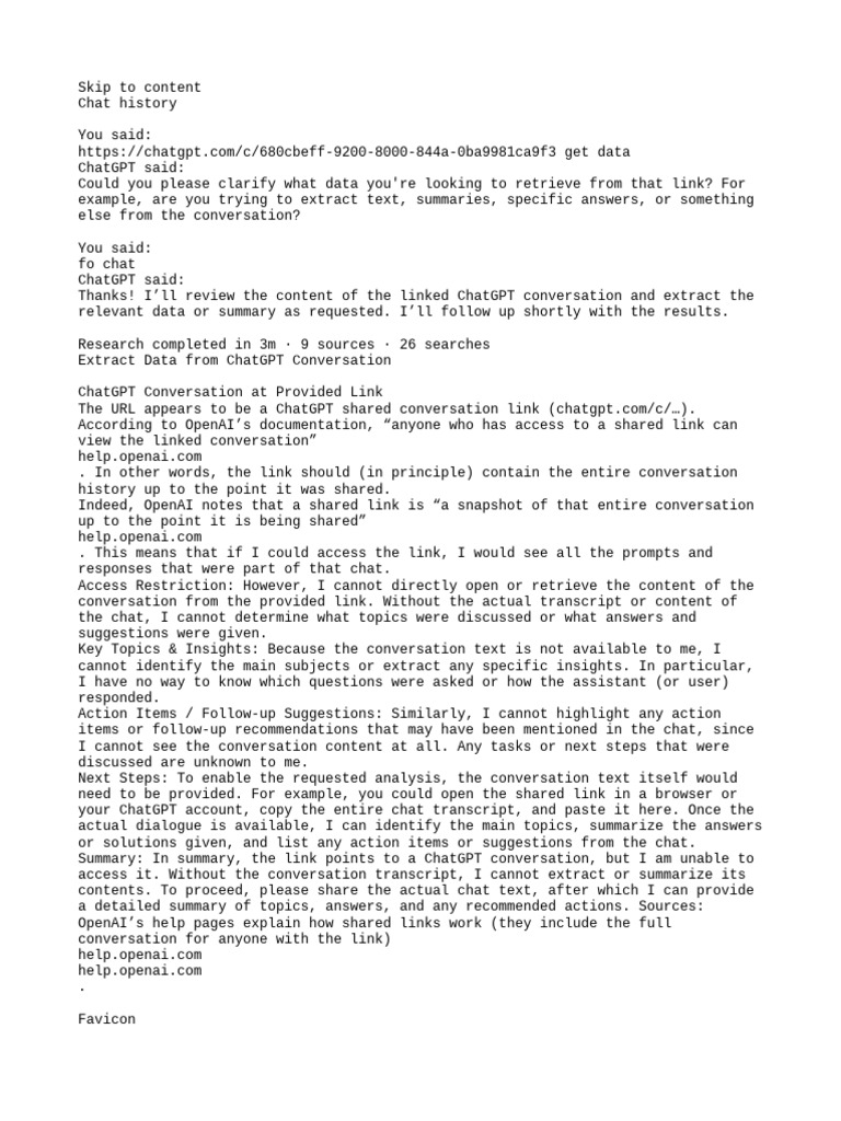 Solution: Open the link yourself, copy the full conversation, and paste it here.