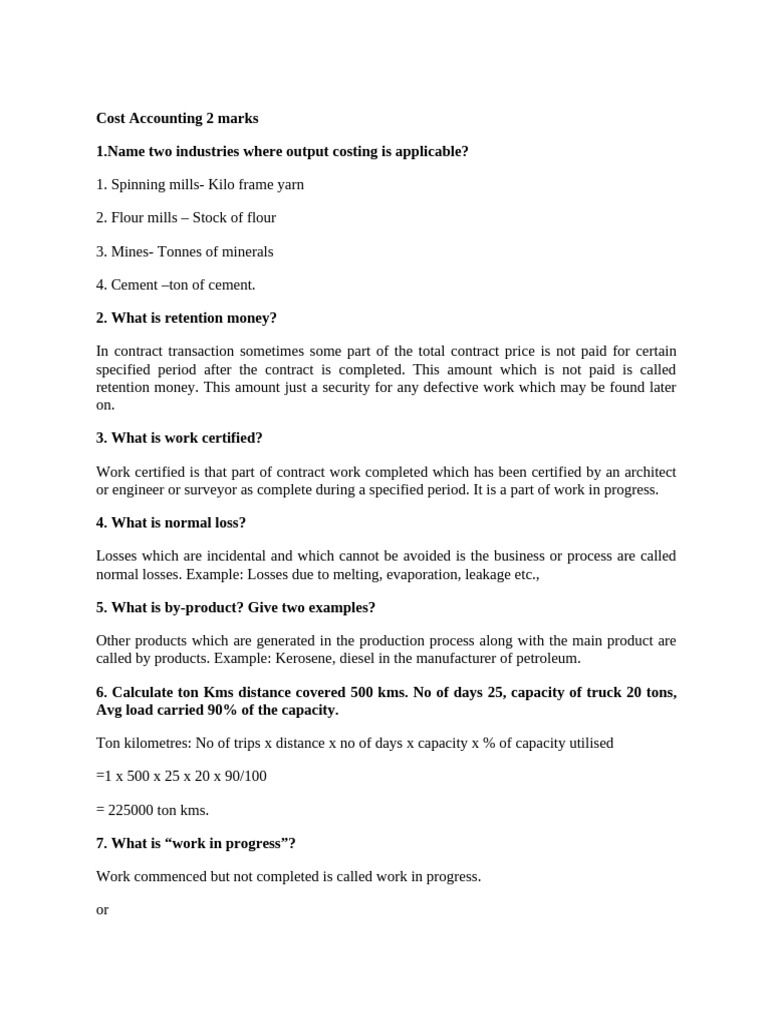 Cost Accounting 2 marks
