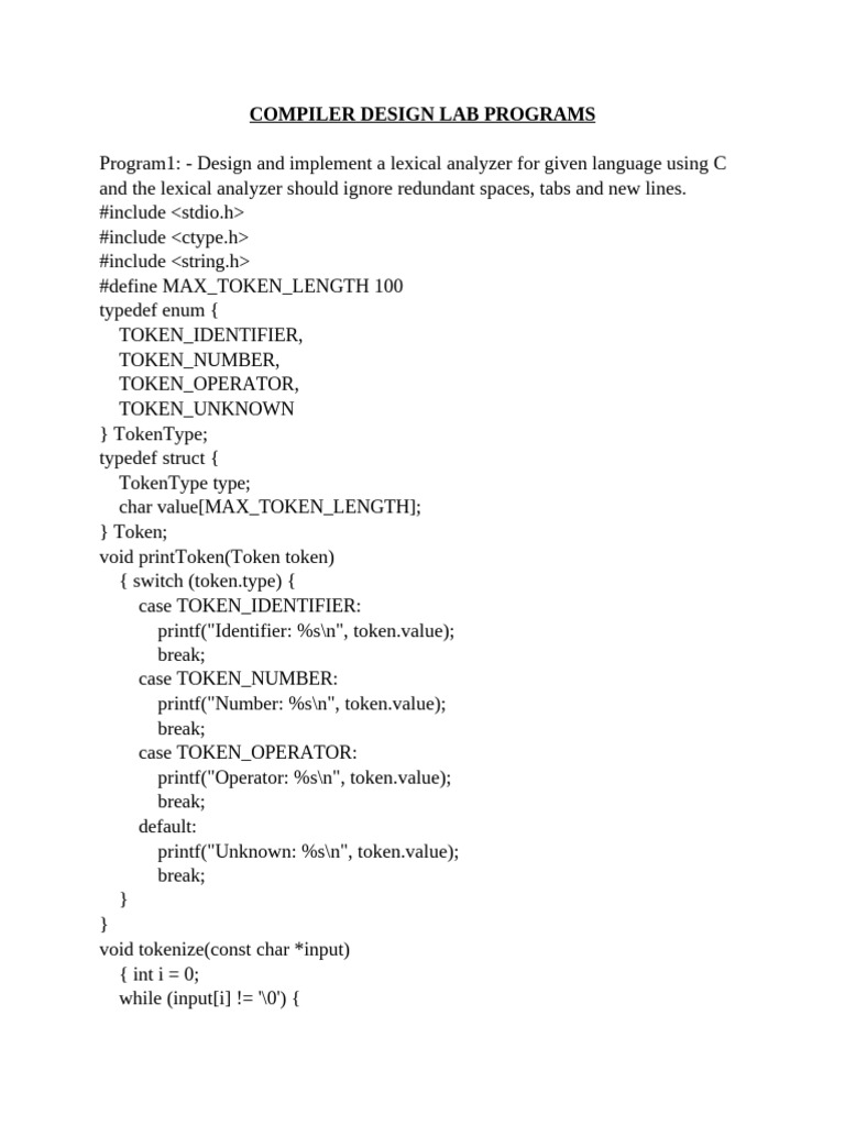 2. Implementation of Lexical Analysis using LeX Tool in C.