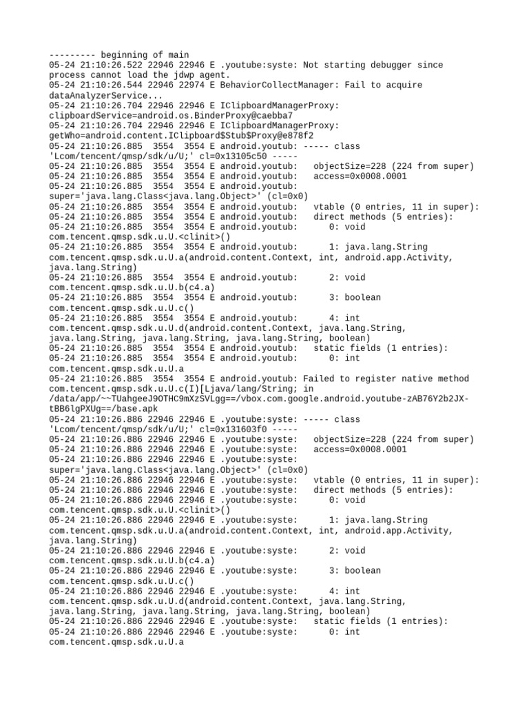 05-24 21:10:26.885 3554 3554 E android.youtub: ----- class