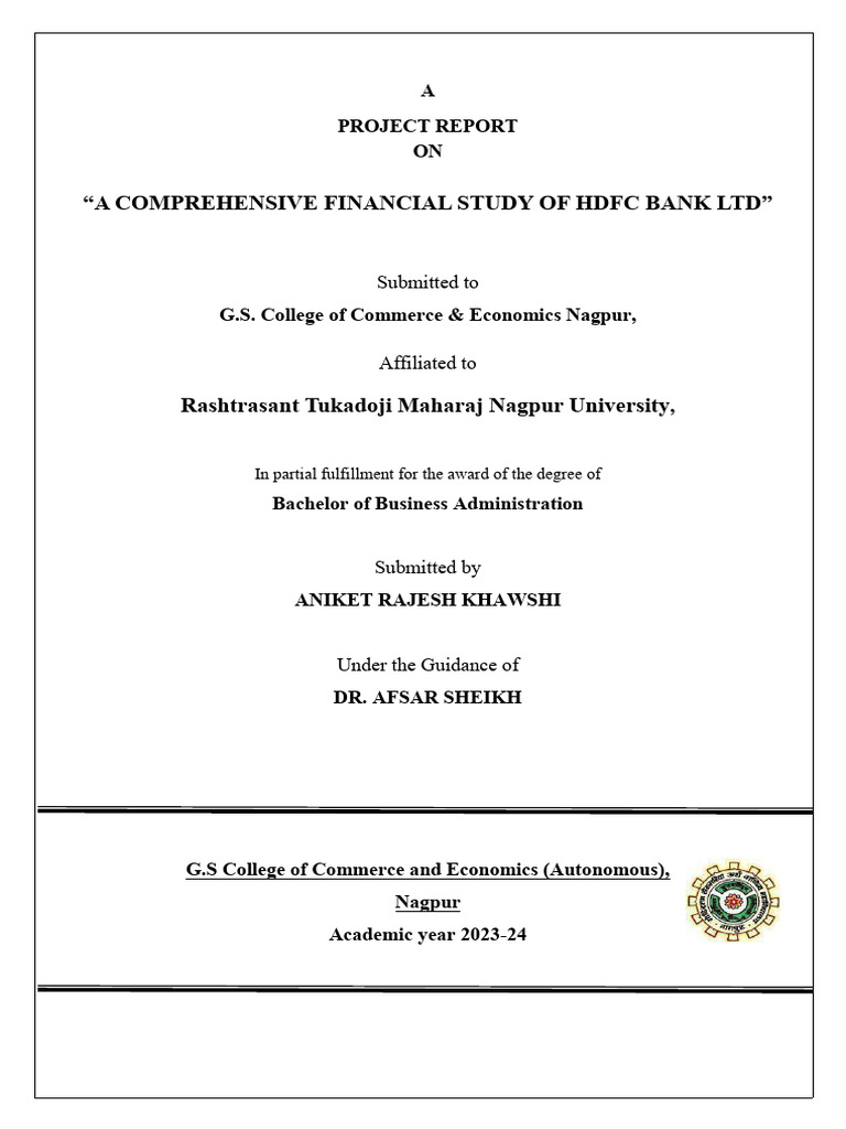 "A Comprehensive Financial Study of HDFC Bank LTD": A Project Report ON