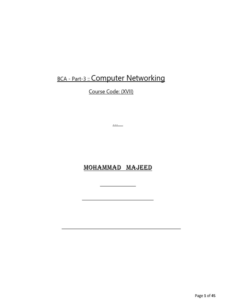 BCA Part 3 Adv Computer Networking Paper 17 Notes
