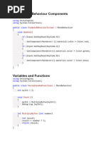 You can reference a gameObject in code in the following ways: This is where most game behaviour code goes, except physics