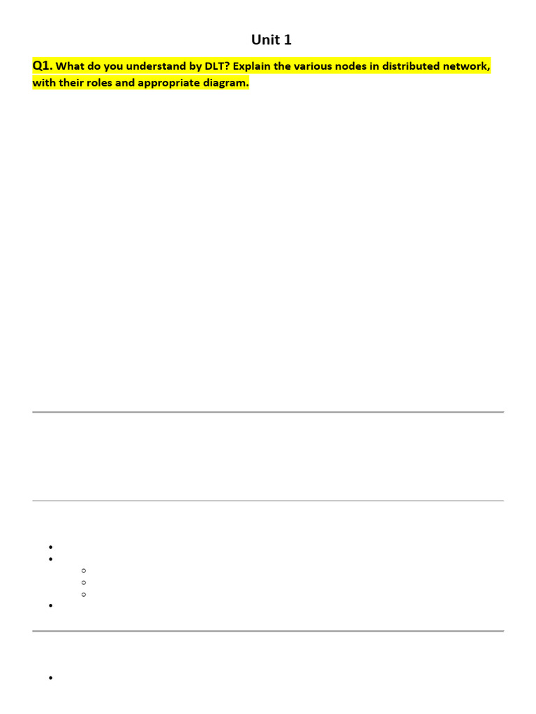 Q1. What do you understand by DLT? Explain the various nodes in distributed network,