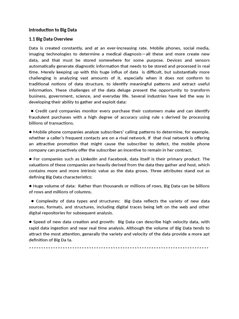 ● Huge volume of data: Rather than thousands or millions of rows, Big Data can be billions