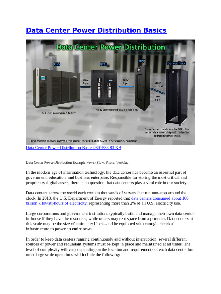 Data Center Power Distribution Example Power Flow. Photo: TestGuy.