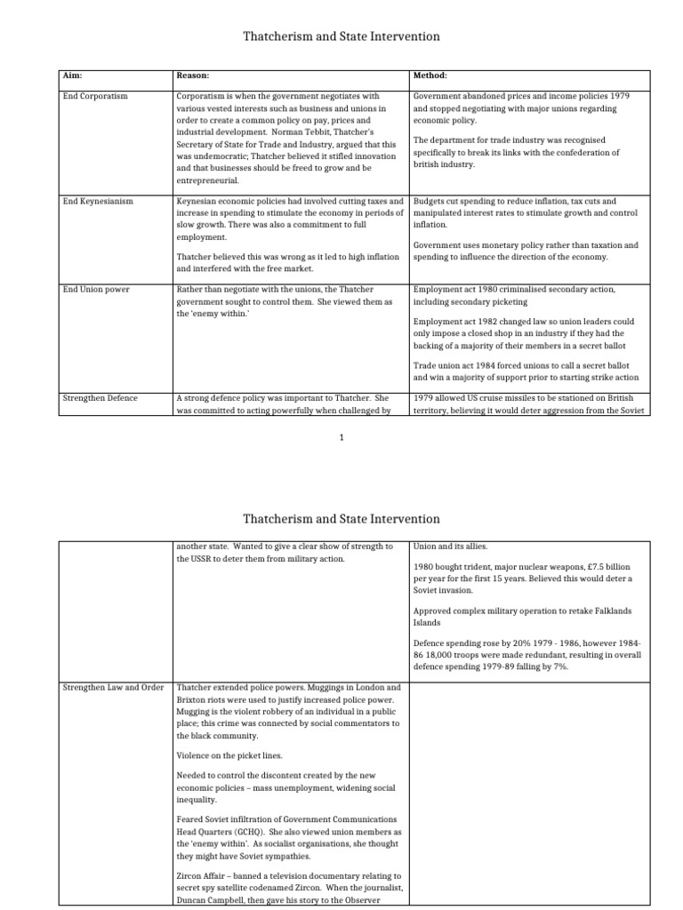 End Union power Rather than negotiate with the unions, the Thatcher Employment act 1980 criminalised secondary action,