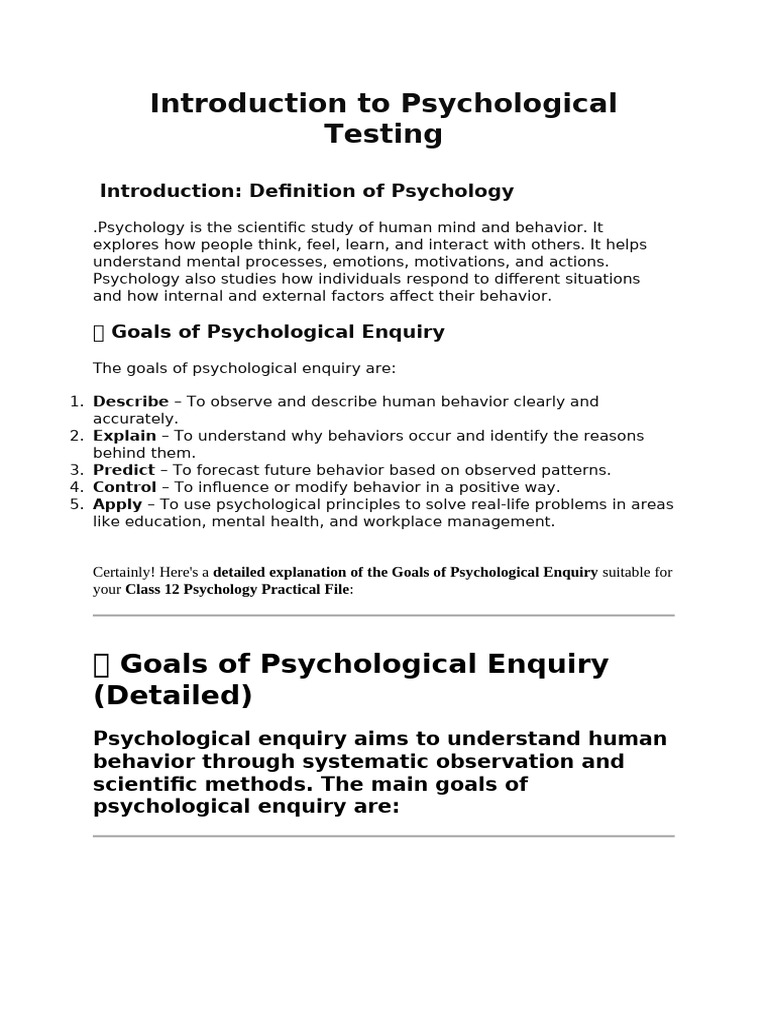 Certainly! Here's a detailed explanation of the Goals of Psychological Enquiry suitable for