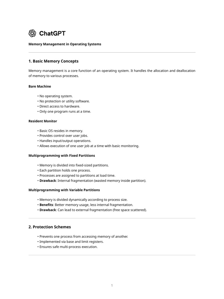 This summary provides a comprehensive and simplified explanation of memory management concepts in