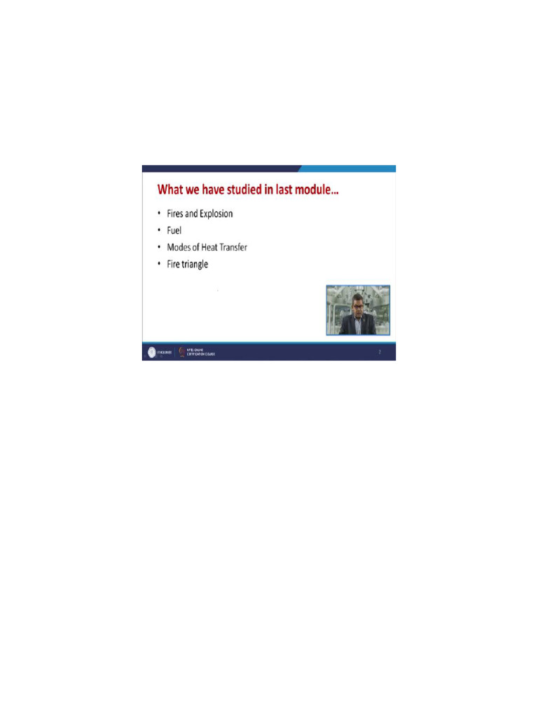 Welcome to the second module of fire and explosion. Up till now we have studied about the fire