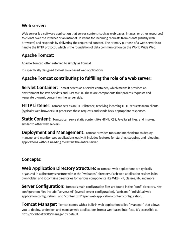 Logs: Tomcat generates logs that provide information about server activities and errors. Logs are