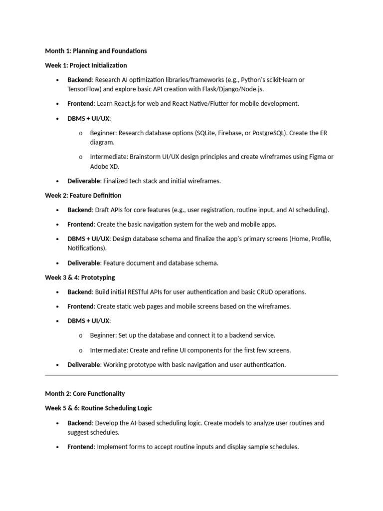 Backend: Draft APIs for core features (e.g., user registration, routine input, and AI scheduling).