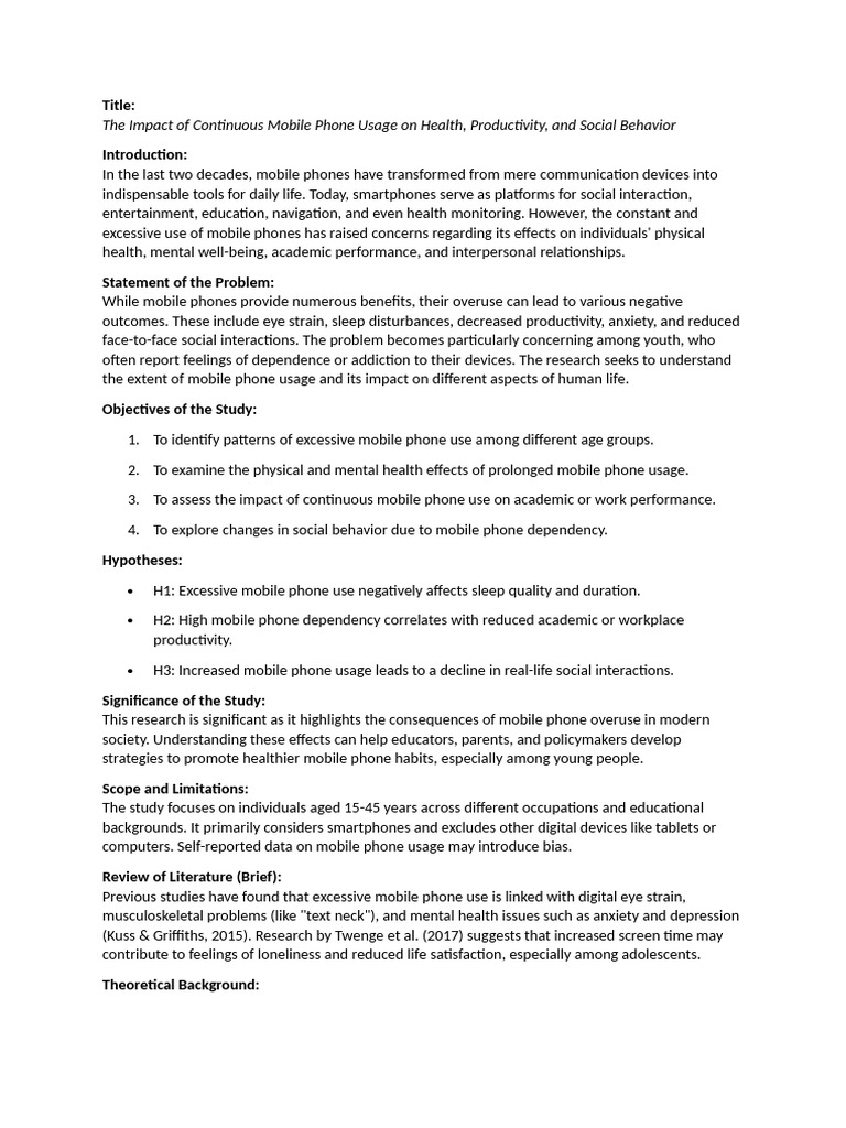 2. To examine the physical and mental health effects of prolonged mobile phone usage.