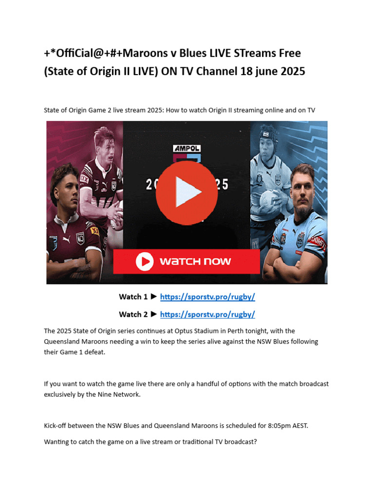 (State of Origin II LIVE) ON TV Channel 18 june 2025