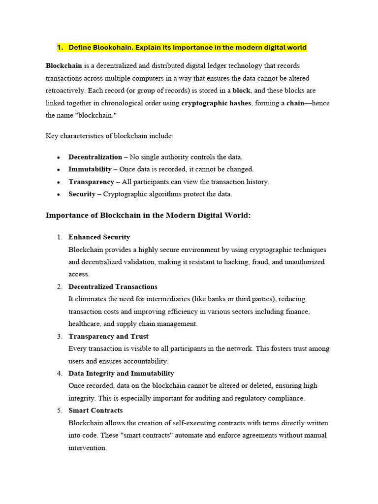 Importance of Blockchain in the Modern Digital World: