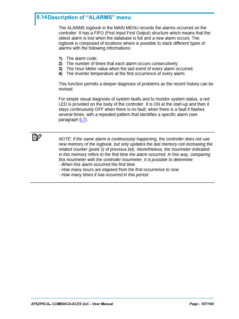 NOTE: if the same alarm is continuously happening, the controller does not use