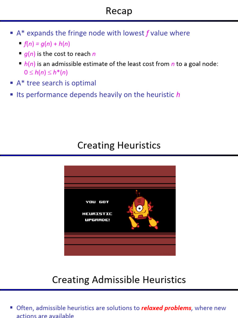 Often, admissible heuristics are solutions to relaxed problems, where new