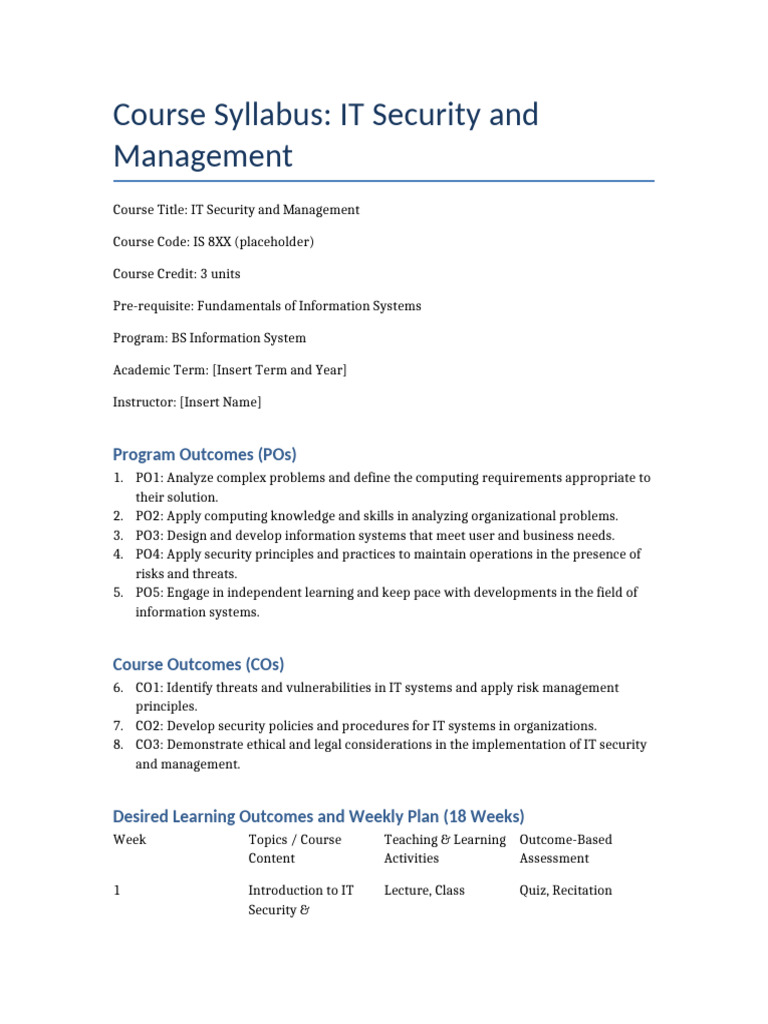 Course Syllabus: IT Security and