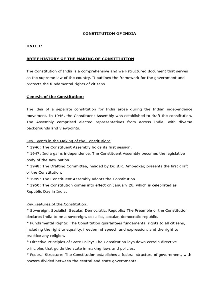 The Indian Constitution is a unique and comprehensive document that outlines the