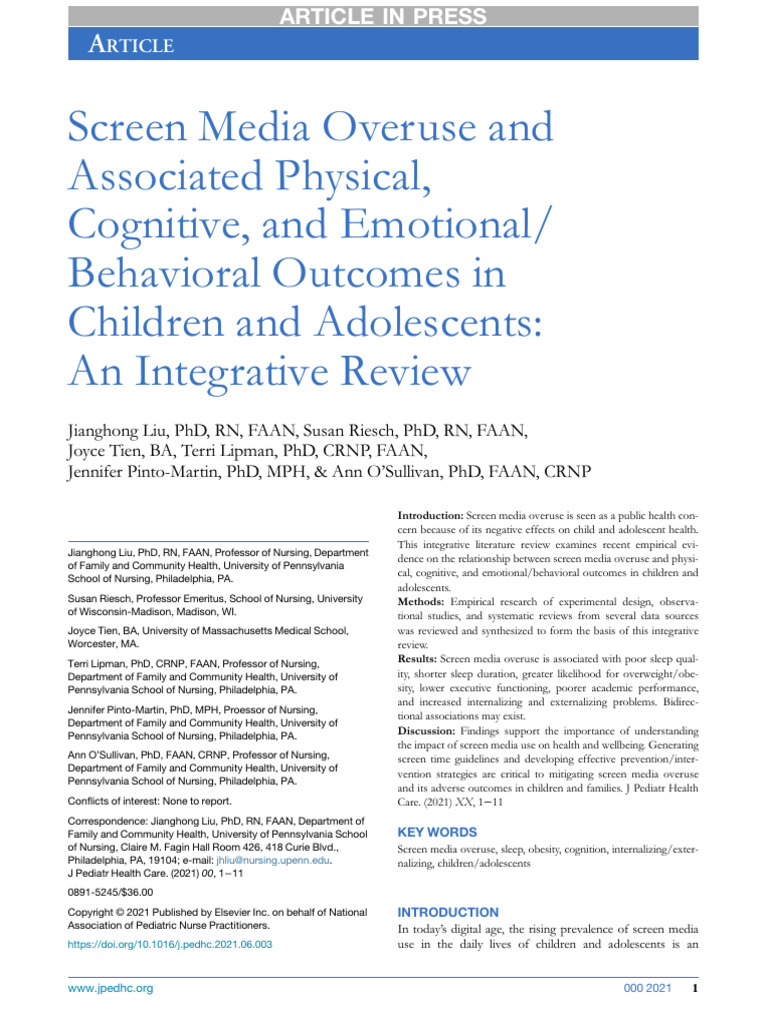 TABLE 1. Summary of key research findings on-screen media overuse and adverse outcomes