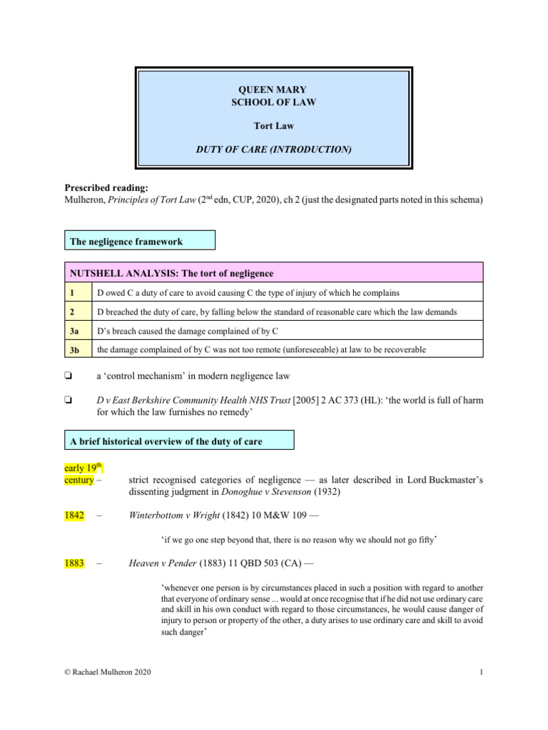 Mulheron, Principles of Tort Law (2nd edn, CUP, 2020), ch 2 (just the designated parts noted in this schema)