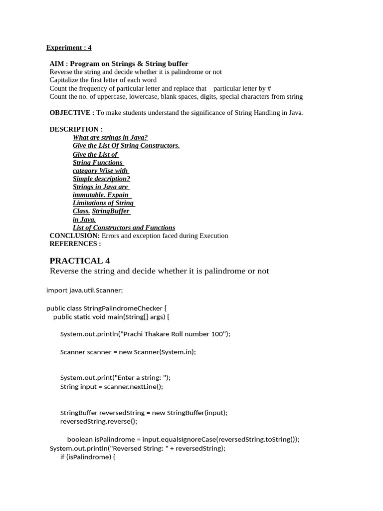 OBJECTIVE : To make students understand the significance of String Handling in Java.