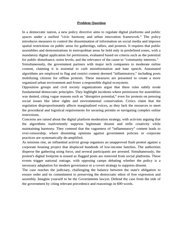 assembly. Imagine yourself to be the Governments lawyer. Defend the case from the side of