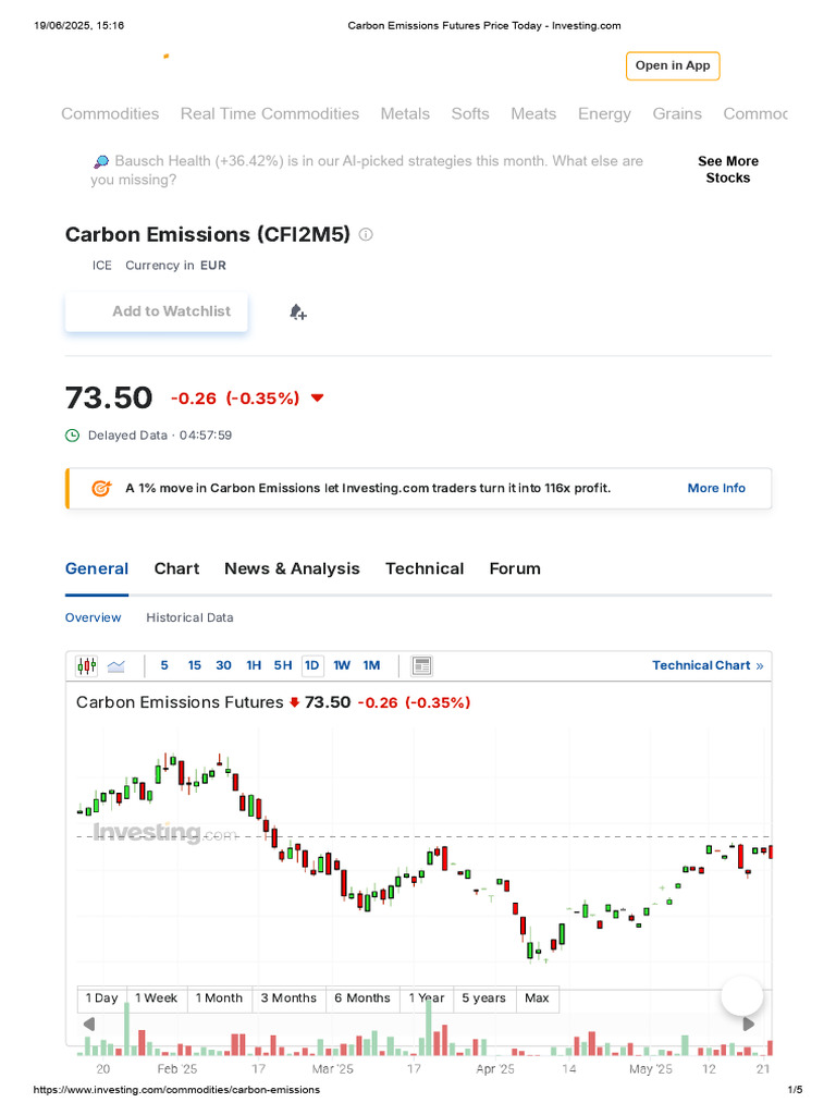 19/06/2025, 15:16 Carbon Emissions Futures Price Today - Investing.com