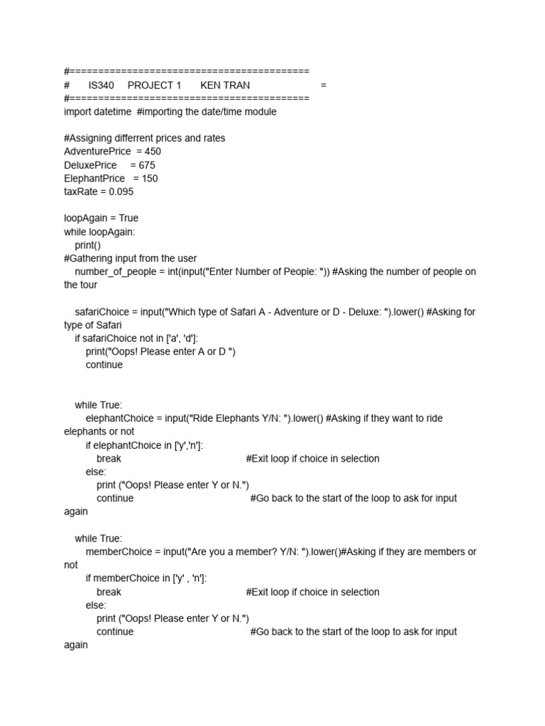 safariChoice = input("Which type of Safari A - Adventure or D - Deluxe: ").lower() #Asking for