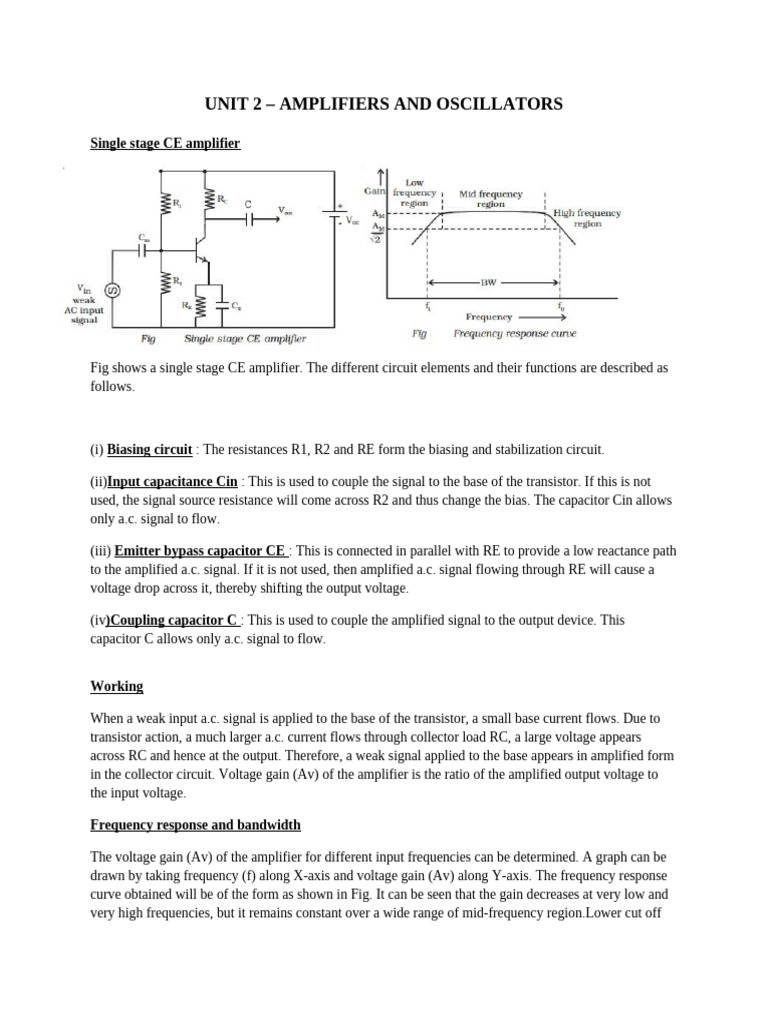 UNIT 2 – AMPLIFIERS AND OSCILLATORS