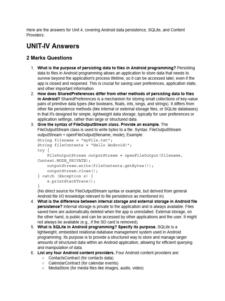 1. What is the purpose of persisting data to files in Android programming? Persisting