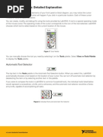 Figure 7: Tools Palette If automatic tool selection is enabled and you move the cursor over objects on the front panel or block diagram, LabVIEW automatically selects the corresponding tool from the Tools palette. You can disable automatic tool selection and select a tool manually by clicking the tool you want on the Tools palette. If you want to use the Tab key to cycle through the four most common tools on the Tools palette, click the Automatic Tool Selection button, shown at left, on the Tools palette to disable automatic tool selection. Press the Shift-Tab keys or click the Automatic Tool Selection button to enable automatic tool selection again. You also can manually select a tool on the Tools palette to disable automatic tool selection. Press the Tab or Shift-Tab keys or click the Automatic Tool Selection button on the Tools palette to enable automatic tool selection again. If automatic tool selection is disabled, you can press the spacebar to switch to the next most useful tool. Use the Operating tool, shown at left, to change the values of a control or select the text within a control. The Operating tool changes to the icon shown at left when it moves over a text control, such as a numeric or string control. Use the Positioning tool, shown at left, to select, move, or resize objects. The Positioning tool changes to resizing handles when it moves over the edge of a resizable object. Use the Labeling tool, shown at left, to edit text and create free labels. The Labeling tool changes to the following icon when you create free labels. Use the Wiring tool, shown at left, to wire objects together on the block diagram. Use the Object Shortcut Menu, shown at left, tool to access an object shortcut menu with the left mouse button. Use the Scrolling tool, shown at left, to scroll through windows without using scrollbars.