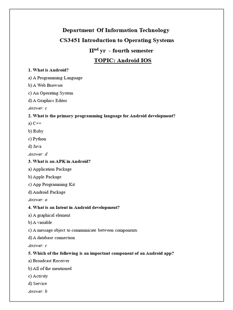 6. What is the purpose of the Android Manifest file (AndroidManifest.xml)?