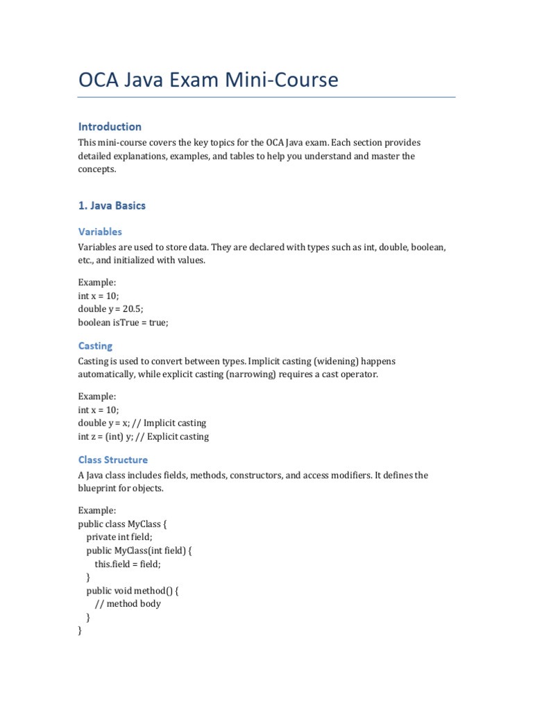 This mini-course covers the key topics for the OCA Java exam. Each section provides