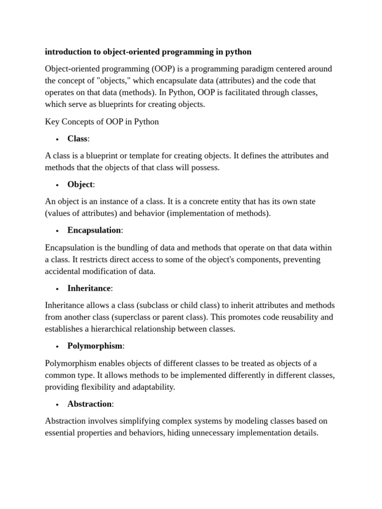operates on that data (methods). In Python, OOP is facilitated through classes,