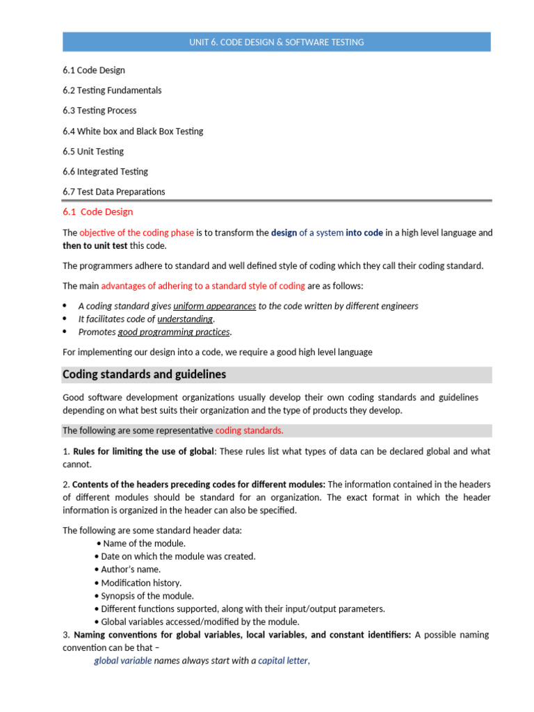 UNIT 6. CODE DESIGN & SOFTWARE TESTING