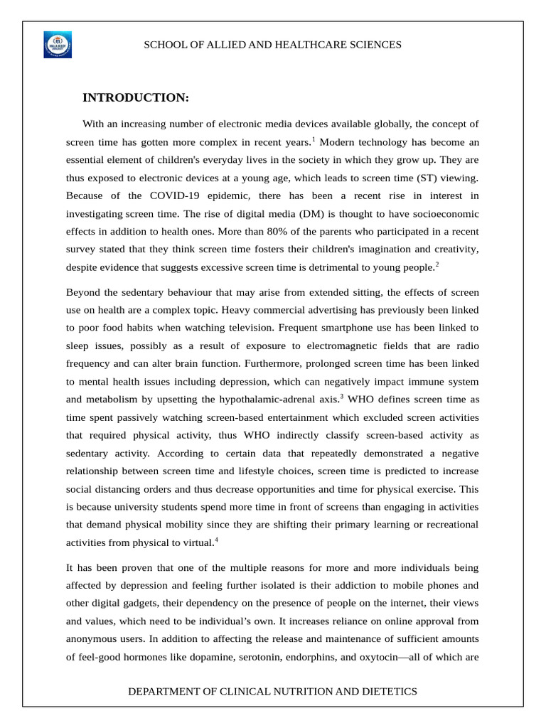 increasingly prevalent.10 Excessive screen usage is linked to other unhealthy lifestyle